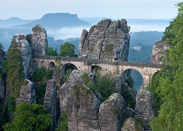Bastei - to formacja skalna stanowiąca jedną z największych atrakcji turystycznych Parku Narodowego Saskiej Szwajcarii, w Górach Połabskich we wschodniej części Niemiec. W 1824 r. pobudowano drewniany most znajdujący się ok. 110 m n.p.m., na prawym brzegu Łaby, pomiędzy miejscowościami Rathen i Stadt Wehlen. Zrodłem nazwy jest wąska skała najdalej wysunięta nad Łabę, czyli "baszta", która wznosi się na wysokości190 m nad taflą wody.