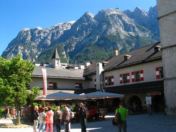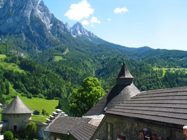W trakcie naszej wyprawy klubowej w roku 2014 zawędrowaliśmy na Ziemię Salburską. A stamtąd już tylko chwila w Alpy. Wybraliśmy się wobec tego w rejon alpejski, aby nasycić oczy górskim krajobrazem i poznać nieco historii tych okolic. Sporą część dnia spędziliśmy w zamku Hohenwerfen, położonym na skalistym wzgórzu nad przełomem rzeki Salzach. Zarówno zamek jak też jego otoczenie zachwyciły nas swoją urodą.