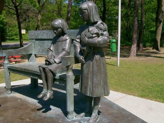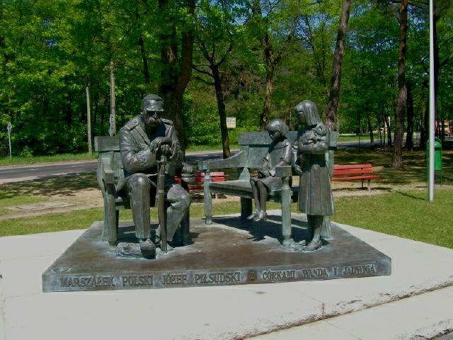 >Nieopodal dworku , bezpośrednio przy ulicy Józefa Piłsudskiego, usytuowano pomnik Marszałka z córkami. Pomnik stanął na Skwerze Niepodległości, na tyłach willi "Milusin", już za ogrodzeniem "Puszczy Milusińskiej", w której Józef Piłsudski mieszkał przez trzy lata (1923-26), gdy przejściowo wycofał się z życia publicznego.
