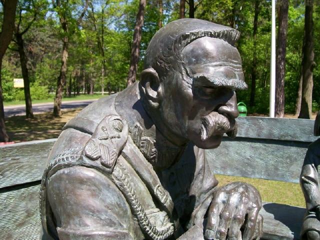 >Swój projekt pomnika Józefa Piłsudskiego dla Sulejówka rzeźbiarz zatytułował: "Lekcja historii". Marszałek w galowym mundurze, siedzi w fotelu opierając się na paradnej szabli. Z boku na sofie siedzi młodsza córka Piłsudskiego Jadwiga z samolotem-zabawką z rękach (gdy dorosła, została pilotem, w czasie II wojny w Anglii w jednostce lotniczej). Obok niej jest puste miejsce, aby każdy, kto chce, mógł się dosiąść. Przy sofie stoi starsza córka Marszałka, Wanda, i trzyma lalkę (Wanda swą drogę zyciową i zawodową związała z medycyną).