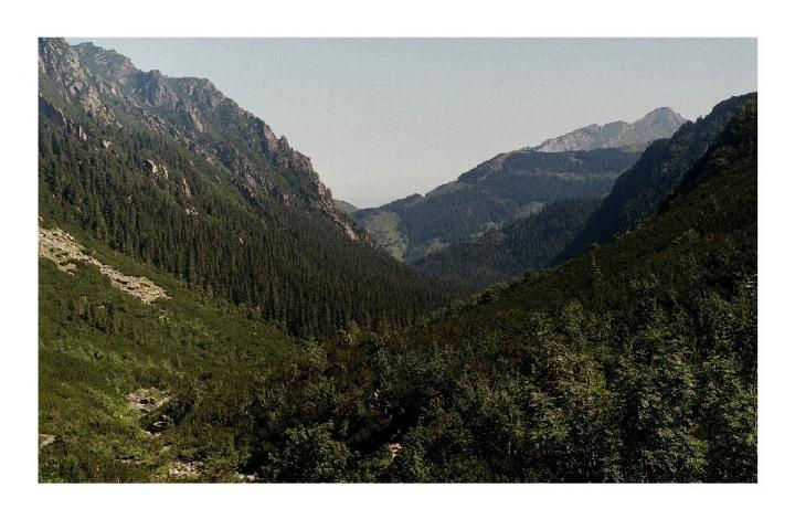 Trzeba się spieszyć... Fakt. Ale łatwiej było to powiedzieć niż wykonać. Teraz właśnie, po tej chwili odpoczynku i rozluźnienia, zaczęło z nas wyłazić zmęczenie podróżą, niewyspanie. Zaczynał dawać o sobie brak kondycji i treningu. Plecaki ciążyły coraz bardziej. Zwiotczałe za biurkami mięśnie nie chciały poruszać się szybciej. Po mniej więcej trzydziestu minutach wyszliśmy wreszcie nad granicę górnego regla. Pojawiły się pierwsze, ledwo wystające nad śnieg kępy kosówki. Staliśmy u stóp progu, który górne, skaliste piętro doliny potoku Roztoka, zwane Doliną Pięciu Stawów, odcinał od jej dolnej, zalesionej części.