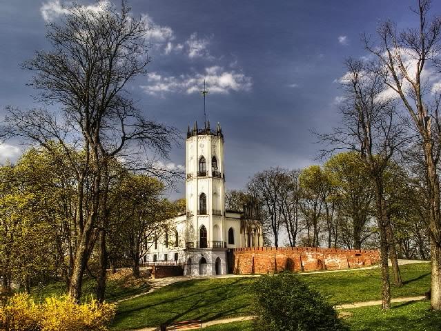 gotycki zamek krzyżacki z XIVw , zniszczony w 1946, po wojnie odbudowany,