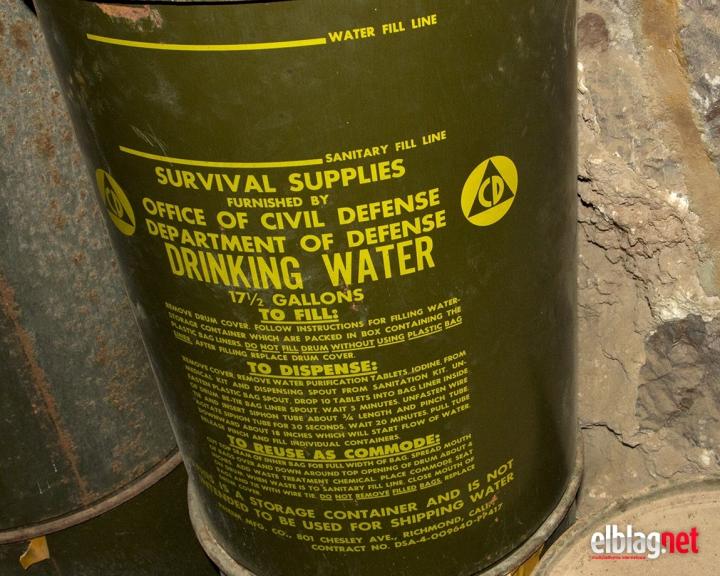 W czasie wędrówki po podziemnych korytarzach natkneliśmy się także na relikt z okresu zimnej wojny. Dziesiątki beczek przeznaczonych na wodę zgromadzonych tam na wypadek nuklearnego armagedonu, pomysł genialny w swej prostocie, wykorzystać jaksinie jako naturalny schron atomowy. Instrukcje na beczkach dostarczają dodatkowych informacji na temat ich zastosowania. Po opróżnieniu zawartości, beczki zamieniają się w przenośne kible. Na beczkach zaznaczone są również dwie wysokości do których zaleca się napełnianie zbiornika, jeden dla wody (wyżej) a drugi dla extrementów.
